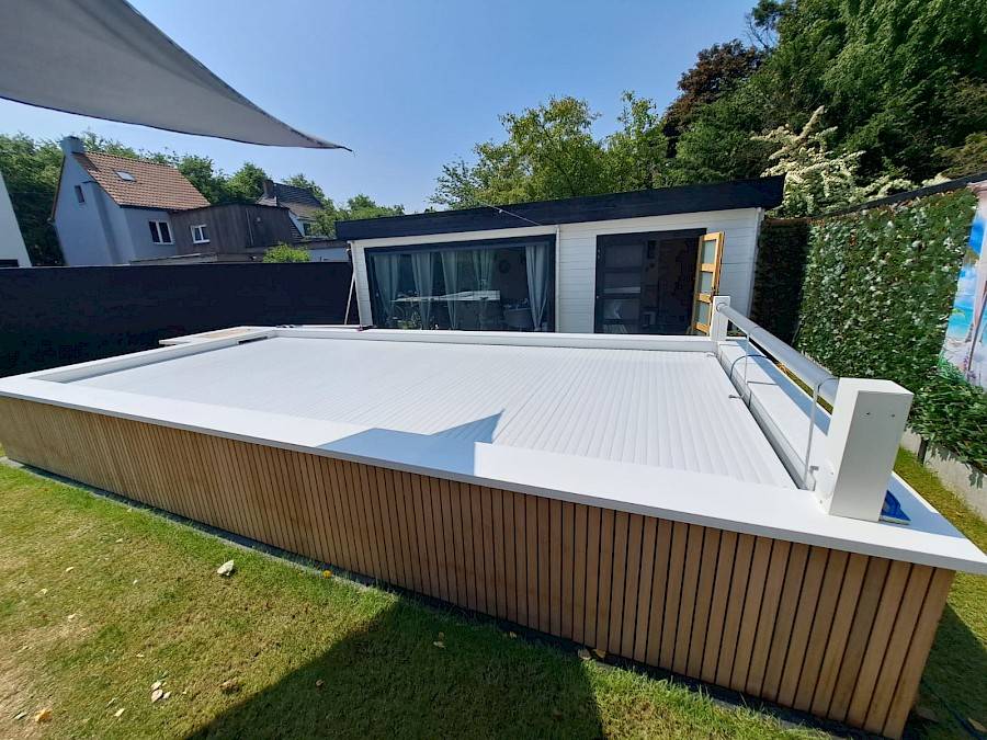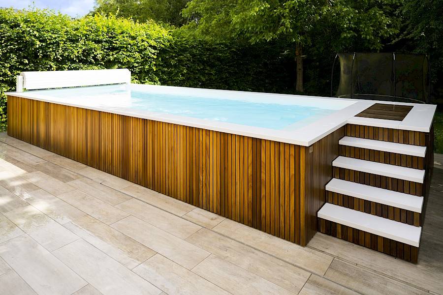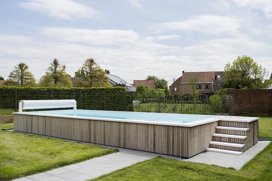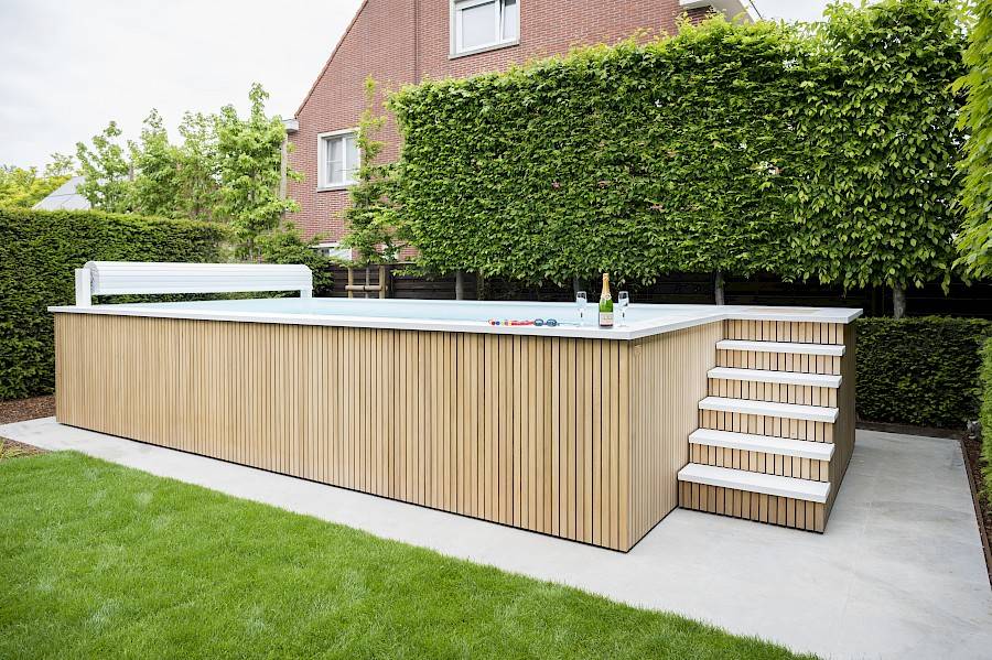 Zwembad met houten afwerking